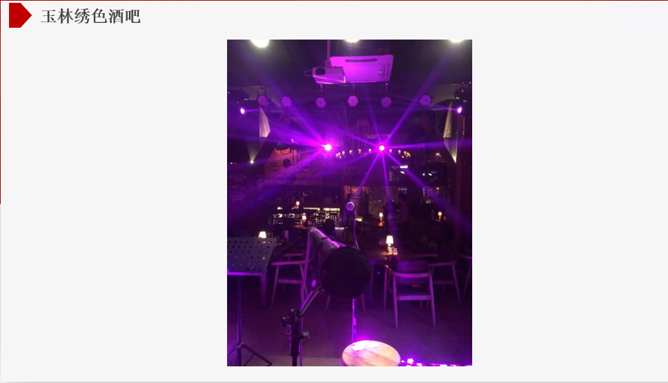繡色酒吧是玉林市為數不多的現場樂隊類型的酒吧,開張之后,生意火爆,并經常邀請國內外的實力派歌手駐場,演奏。